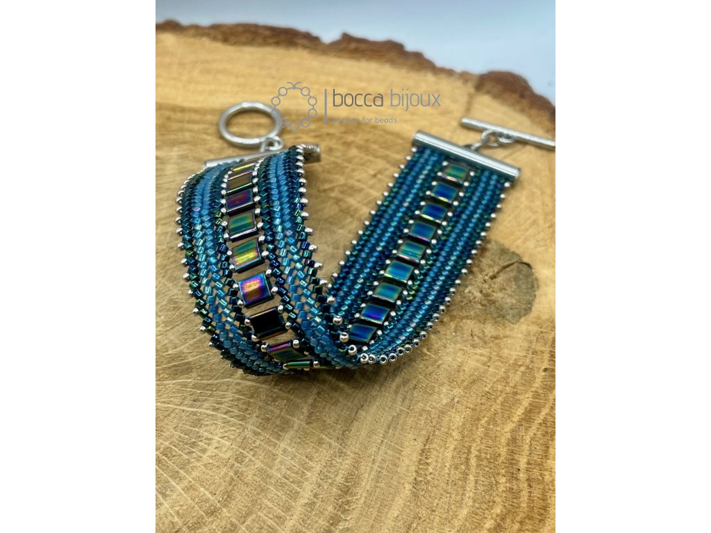 Tento náramek je precizně ručně šitý z vysoce kvalitních japonských korálků Miyuki. Korálky Miyuki jsou známé svou přesností tvaru a jednotnou velikostí, což umožňuje vytvářet složité a detailní vzory. Náramek kombinuje různé tvary a barvy korálků, čímž vytváří zajímavou texturu a vizuální efekt.