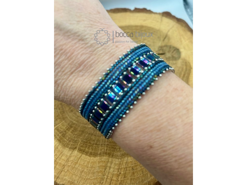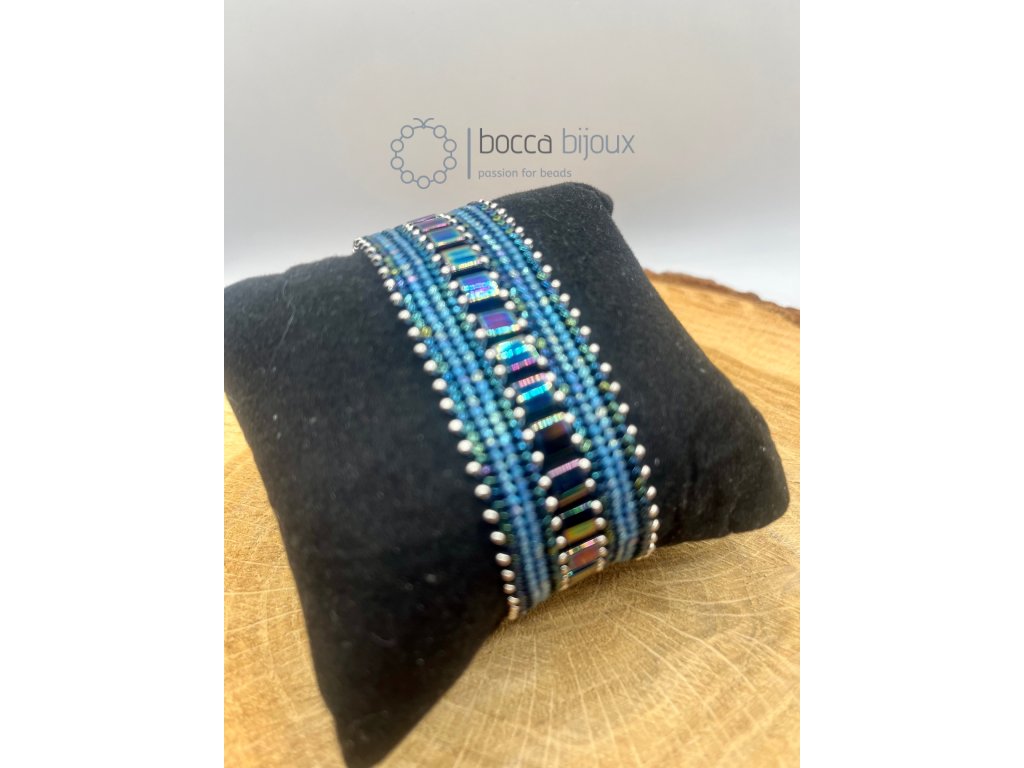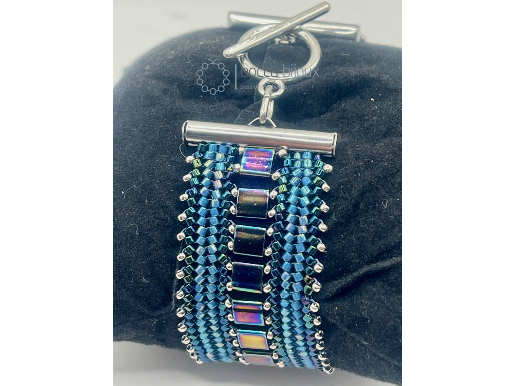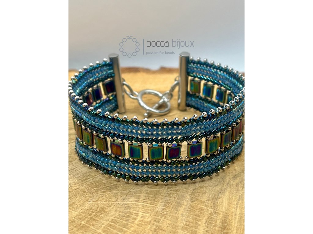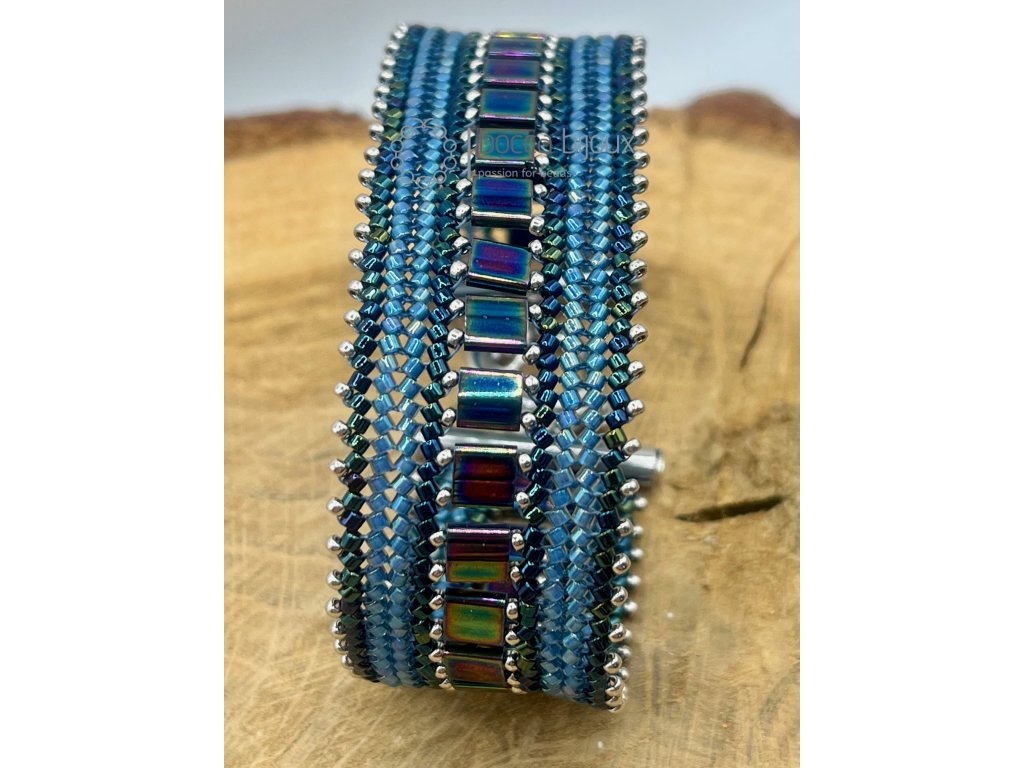 Tento náramek je precizně ručně šitý z vysoce kvalitních japonských korálků Miyuki. Korálky Miyuki jsou známé svou přesností tvaru a jednotnou velikostí, což umožňuje vytvářet složité a detailní vzory. Náramek kombinuje různé tvary a barvy korálků, čímž vytváří zajímavou texturu a vizuální efekt.