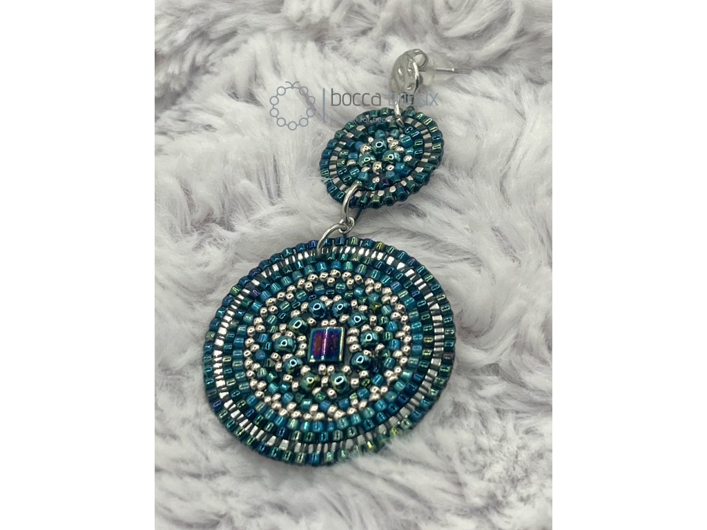Tyto náušnice jsou ručně vyrobené z kvalitních japonských korálků Miyuki a ocelových komponentů. Jejich unikátní design a precizní zpracování z nich dělají elegantní a stylový doplněk pro každou příležitost. Korálky Miyuki jsou známé svou pravidelností a leskem, což náušnicím dodává luxusní vzhled. Ocelové komponenty zajišťují pevnost a odolnost.