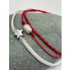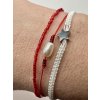 Sada tří minimalistických náramků v červené a bílé barvě s říční perličkou a nerezovou hvězdou.